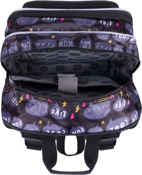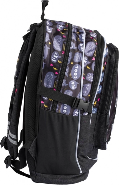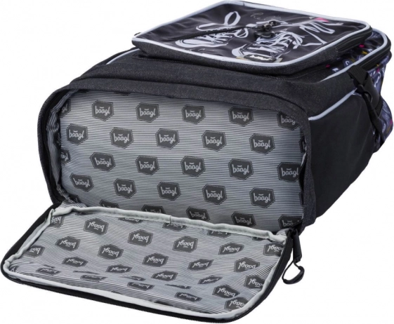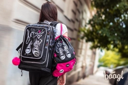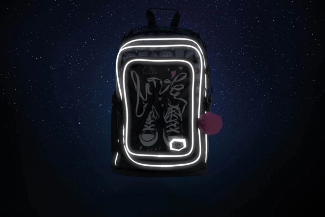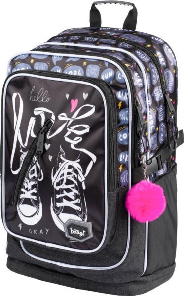Sac à dos scolaire BAAGL stylé de la gamme CUBIC avec motif sneakers, offrant un dossier ergonomique, 3 compartiments spacieux avec organisateur et poche pour ordinateur portable 15", un poids léger de 1,2 kg et des éléments réfléchissants pour la sécurité. Son matériau déperlant, ses bretelles ajustables et ses poches pratiques en font un sac parfait pour l’école comme pour le temps libre.