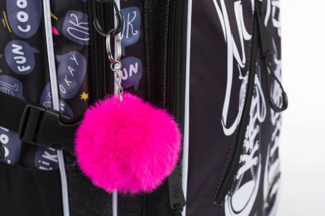 Trois compartiments séparés avec organisateur interne aident à garder de l’ordre et à répartir le poids de manière homogène. On retrouve une poche rembourrée pour ordinateur portable ou tablette 15", un organisateur frontal avec sangle amovible et mousqueton pour clés, ainsi qu’une poche secrète renforcée dans la partie inférieure. Les poches latérales élastiques sont idéales pour une bouteille. Le sac est fabriqué dans un matériau déperlant et robuste, complété par des éléments réfléchissants et un porte-clés pompon tendance.