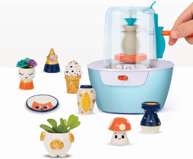 Les éléments interactifs permettent aux enfants de faire tourner l'argile et de suivre avec enthousiasme la formation de leurs créations. Ce jouet est idéal pour un jeu créatif.