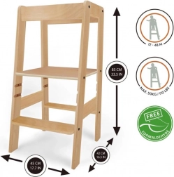 La tour est conçue pour que les enfants puissent monter sur la plateforme de manière autonome et avec un minimum d'effort, ce qui favorise leur indépendance et leurs compétences motrices. Fabriquée à partir de bois testé sans formaldéhyde, elle garantit la sécurité du matériau pour votre enfant.