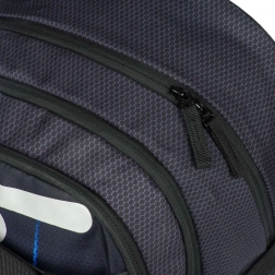 Sur le compartiment avant, deux sangles permettent de fixer le skateboard en toute sécurité. Les poches latérales en maille accueillent facilement une gourde, et les petites affaires se rangent dans des poches bien organisées.