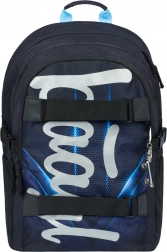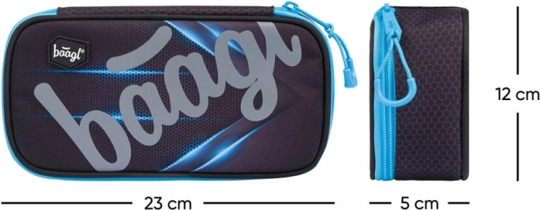 À l’avant du sac, des sangles permettent de fixer un skateboard, pour transporter la planche en toute sécurité jusqu’à l’école et retour. La sécurité est renforcée par des éléments réfléchissants, le matériau est résistant et imperméable, et un pendentif métallique en forme de skateboard est inclus. Le set est complété par une trousse solide avec rabat intérieur, poche zippée et emploi du temps (sans contenu), ainsi qu’un sac pour sport/chaussures de rechange doté d’un logo BAAGL phosphorescent, pouvant se porter sur le dos grâce à des cordelettes robustes.