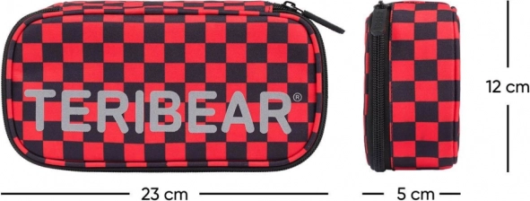 Pratique trousse scolaire étui BAAGL au design TERIBEAR avec motif à carreaux rouge‑noir, offrant une construction rigide, une cloison rabattable pour une organisation claire et un logo réfléchissant pour une meilleure visibilité. À l’intérieur, on trouve une poche zippée et un emploi du temps. La trousse est livrée sans contenu.