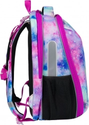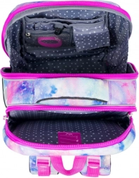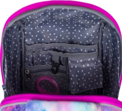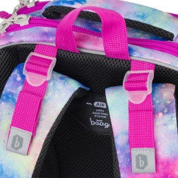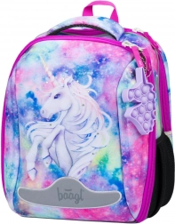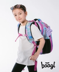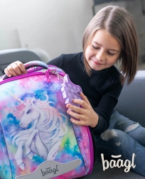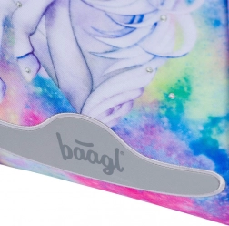 Le cartable scolaire Baagl Shelly Licorne se distingue par un corps renforcé, qui protège le contenu comme une carapace. Grâce au système à deux compartiments, la charge est répartie uniformément, tandis que le compartiment avant comprend un organiseur pratique avec une petite poche pour les accessoires et un mousqueton pour les clés.