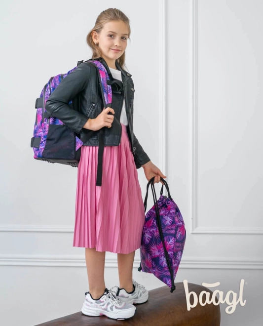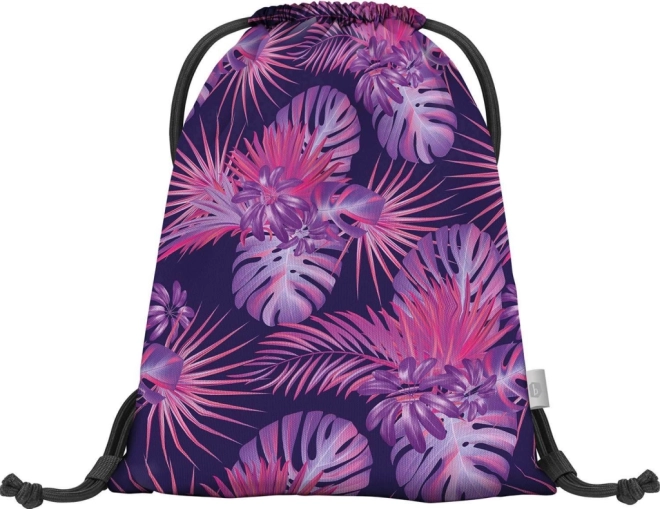 Le sac présente un motif tropical attrayant dans des tons roses et violets qui attire le regard.