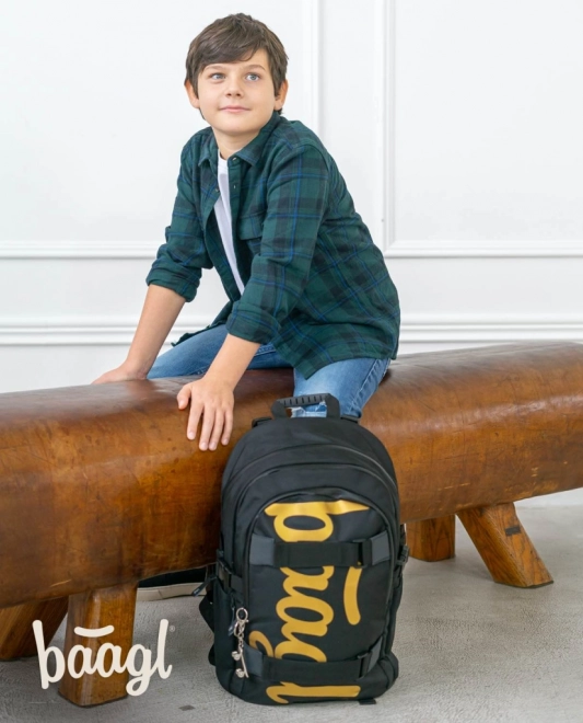 Le set scolaire BAAGL SKATE GOLD au style affirmé comprend un sac à dos ergonomique, une trousse spacieuse et un sac pratique. Le sac à dos offre 3 compartiments, une poche pour ordinateur portable 15", des sangles pour skateboard et des éléments réfléchissants. Son faible poids de 850 g, son volume de 25 l et son matériau déperlant garantissent confort et résistance pour chaque journée d’école.