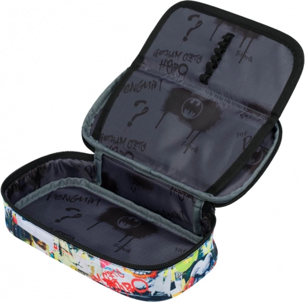 Cette trousse scolaire avec motif Batman Comics présente des motifs de bande dessinée originaux qui séduisent tous les fans de super-héros. Elle est équipée d'une cloison intérieure rabattable qui facilite l'organisation. Elle dispose également d'une poche intérieure zippée et d'un compartiment spécial pour le planning, améliorant son utilisation pratique. La trousse est fabriquée en matériau textile, ce qui lui confère légèreté et durabilité.