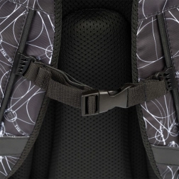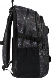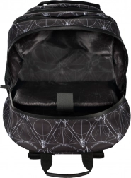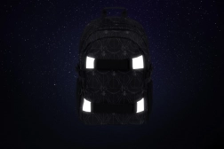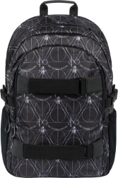 Deux sangles avant robustes permettent de fixer le skateboard en toute sécurité. Le design noir‑blanc moderne avec le motif des Reliques de la Mort et des éléments réfléchissants garantit que vous serez visible et aurez fière allure.