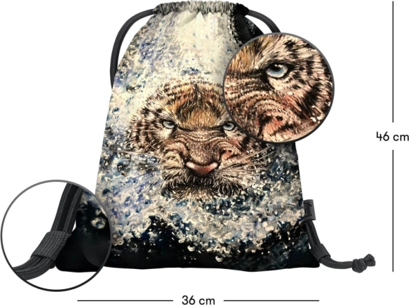 Un sac à dos stylé avec motif de tigre de la collection eARTh by Lukero, idéal pour les chaussures et les petits objets pour les activités de loisirs. Il offre un matériau résistant et lavable et une fermeture par cordons robustes, qui permettent également un port confortable sur le dos.