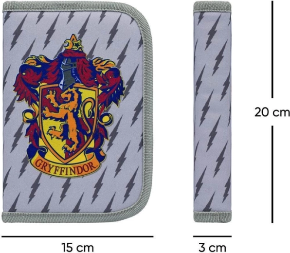 Le set comprend également une trousse une couche à deux rabats (sans contenu), un sac pour sport/chaussures avec poche frontale zippée et cordons de serrage pour port dorsal, des chemises pour cahiers scolaires avec rabat intérieur et élastique, ainsi qu’un porte-monnaie à porter au cou avec fermeture velcro et petite poche zippée pour la monnaie. Le tout assorti au thème Gryffondor pour une rentrée stylée.