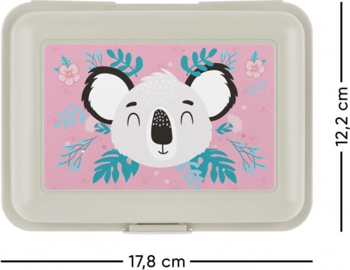 Boîte à goûter avec une jolie image de koala sur un couvercle rose qui captivera chaque enfant.