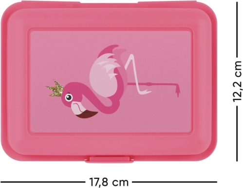 La boîte capte l'attention au premier regard grâce à son motif ludique de flamant rose sur le couvercle. La combinaison de la couleur rose et de ce motif joyeux ravive chaque repas.