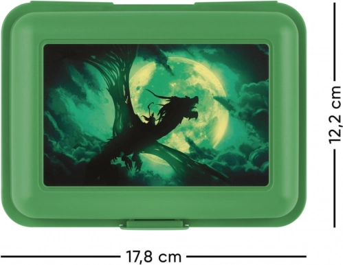Cette boîte à goûter pratique est la solution idéale pour le rangement quotidien de vos plats préférés. Avec son design stylé de dragon volant contre la pleine lune, elle garde non seulement vos aliments frais, mais attire aussi par son aspect original. La fermeture facile à un verrou et la cloison intérieure signifient que chaque morceau de nourriture reste à sa place.