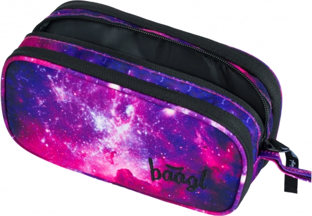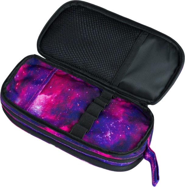 La trousse scolaire Galaxy allie fonctionnalité et style avec un design unique galaxie dans des tons violets et roses. Fabriquée en textile de qualité, elle propose trois compartiments séparés et fermables par un zip pour une séparation et une organisation faciles de vos objets. La surface extérieure est faite d'un matériau durable qui protège le contenu de la trousse. Grâce à l'organisation intérieure claire, vous trouverez de la place pour divers petits objets, comme des gommes, des taille-crayons et d'autres fournitures scolaires. La boucle pratique permet de porter facilement la trousse ou de l'accrocher à un sac à dos.
