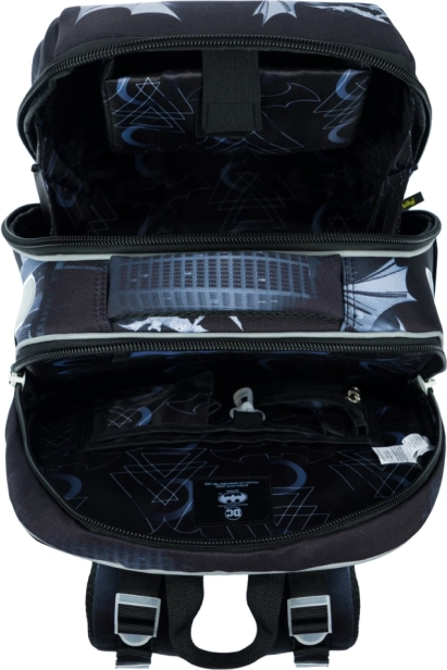 Cartable scolaire léger et stable pour les élèves de CP et de primaire, avec le motif BATMAN Dark City. Il offre un corps rigide renforcé pour une protection maximale des cahiers, une organisation à deux compartiments pour un port clair et ordonné, un dos respirant avec système Air Ergo Adjustable et des éléments réfléchissants pour la sécurité. Poids réduit de seulement 1000 g, volume de 23 l et organiseur pratique pour tout le nécessaire scolaire.