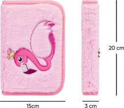 Le recto est orné d’une broderie de flamant rose avec couronne sur une surface en peluche douce, agréable au toucher, qui fait de la trousse un accessoire original.