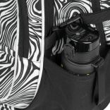 - Poches latérales en matériau robuste adaptées pour une bouteille ou d'autres petits objets.