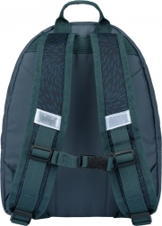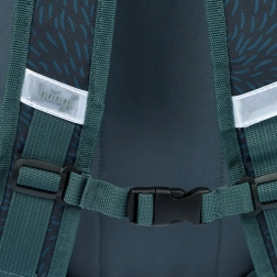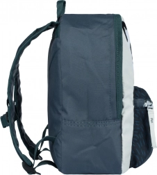 Le compartiment principal accueille le goûter, une bouteille ou des jouets, tandis que la poche avant garde les petits objets à portée de main. Les éléments réfléchissants améliorent la visibilité par faible luminosité et le matériau déperlant protège le contenu de l’humidité.