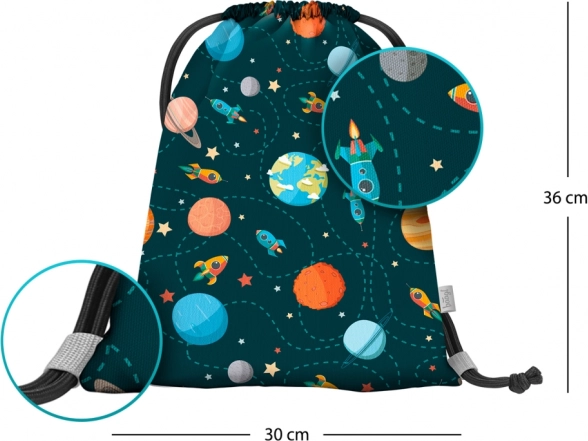Léger et pratique, le sac préscolaire Baagl au motif Planètes est idéal pour les chaussures ainsi que les petites affaires pour les activités et le temps libre. Fabriqué en matériau solide et lavable, avec fermeture par cordons résistants qui permettent également un port confortable sur le dos.