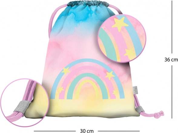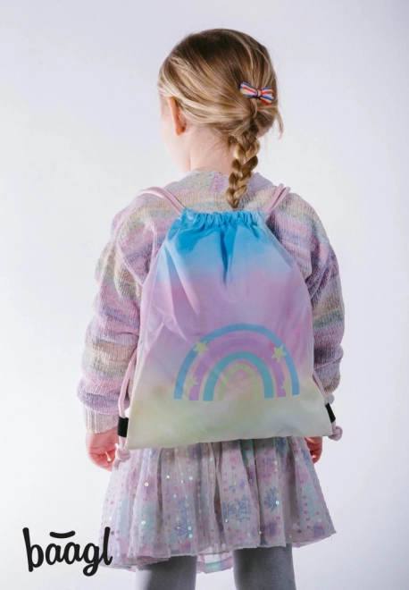 Un sac BAAGL Rainbow léger et stylé pour les enfants, pour la maternelle comme pour le temps libre. Idéal pour les chaussures et les petits objets, fabriqué en matériau résistant et lavable avec fermeture par cordons, permettant un port confortable sur le dos.