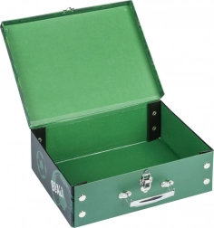 Le système de pliage unique avec boutons-pression permet de plier et déplier la mallette à tout moment – idéal pour gagner de la place dans la chambre d’enfant comme dans le casier d’école. La poignée métallique est agréable en main et facilite le transport.