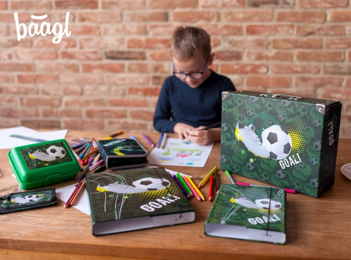 Vous cherchez une mallette scolaire à la fois résistante et design pour transporter fournitures d’arts plastiques, cahiers ou petits objets ? La mallette scolaire pliable BAAGL avec motif football séduit autant par son look que par sa fonctionnalité. Le papier laminé robuste et les coins renforcés garantissent une longue durée de vie, les ferrures métalliques apportent de la stabilité et la boucle classique maintient le contenu en sécurité.