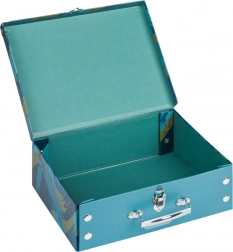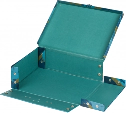 • Valisette pliante en papier laminé rigide avec coins renforcés en métal.