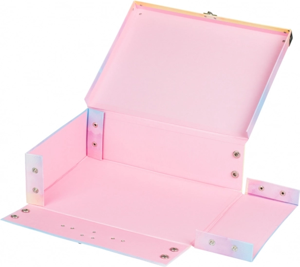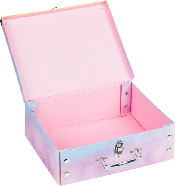 Le carton laminé robuste avec coins métalliques résiste à un usage quotidien, tandis que la poignée en métal et la boucle classique assurent un transport confortable et une fermeture sûre. Les couleurs pastel et la licorne ludique raviront chaque écolier et écolière.