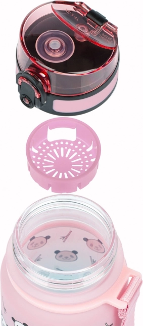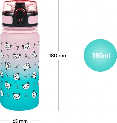 Le tritan certifié n’absorbe pas les odeurs, est sûr pour la santé (sans BPA, PVC ni phtalates) et résiste aux chocs. Le dégradé rose–turquoise avec de joyeux pandas motive à boire régulièrement et, grâce à la dragonne, la bouteille reste toujours à portée de main.