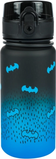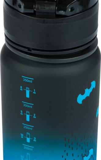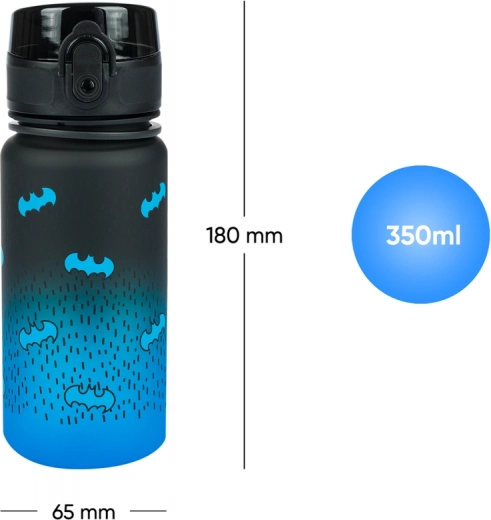 Gourde en tritan élégante avec motif BATMAN en dégradé bleu‑noir, offrant une capacité de 350 ml, un couvercle verrouillable anti-fuite, une dragonne pratique et un infuseur pour fruits ou thé. Fabriquée en tritan sûr sans BPA, idéale pour l’école, le sport et les sorties.