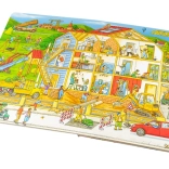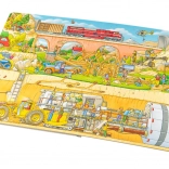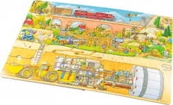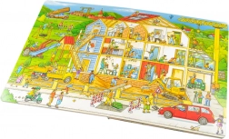 En ville, il se passe toujours quelque chose — on creuse, on répare, on construit et on embellit. Les enfants chercheront dans les pages des camions-bennes, des bétonnières, des pelleteuses, des grues ou des chariots élévateurs; ils découvriront le travail des artisans ainsi que la manière dont le chef d’équipe et le conducteur de travaux supervisent tout. Sont également présents l’architecte, le photographe ou le jardinier et une foule de petits personnages avec leurs propres micro‑histoires. Ce livre pour enfants sur le chantier est un excellent livre d’observation (wimmel), qui développe naturellement l’expression et l’attention.