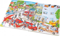 Ce grand livre illustré plonge les jeunes lecteurs dans le monde d’action des pompiers. Les enfants verront comment se prépare une sortie, comment fonctionne la grande échelle, les lances et autres équipements, et comment se déroule le sauvetage de personnes dans des maisons en feu. Les illustrations, riches en détails, invitent à raconter des histoires.