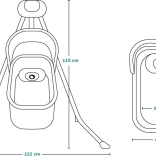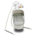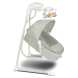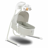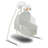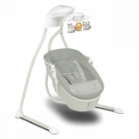 Le transat offre 3 positions réglables, de la position allongée à assise, une rotation du couffin jusqu’à 115° et un coussin confortable avec rembourrage amovible pour un nettoyage facile. Le mobile intégré avec jouets et lumières, le lecteur MP3 avec USB et le minuteur de balancement apportent divertissement et confort. La moustiquaire pratique protège des insectes et permet une utilisation en extérieur.