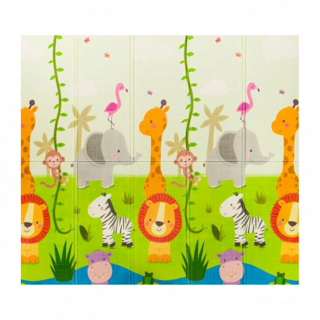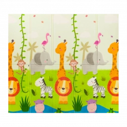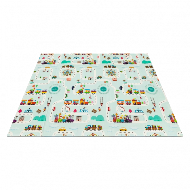 Un seul tapis, deux fois plus d’amusement. Des animaux de safari colorés et un plan de ville interactif inspirent les histoires et stimulent l’imagination.