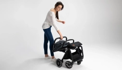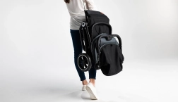 L’auvent XXL avec traitement imperméable et filtre UPF50+ offre une protection fiable contre le soleil et la pluie. La sécurité est assurée par des harnais 5 points et des éléments réfléchissants pour une meilleure visibilité. D’une simple pression sur un bouton, la poussette se plie automatiquement en un format compact – vous la transportez facilement grâce à une sangle dédiée et une housse de protection.