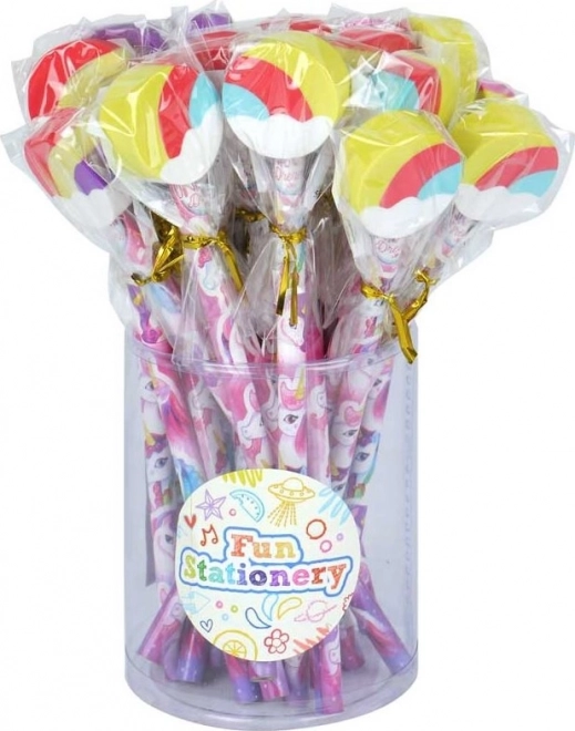 Ce crayon graphite stylé à motif licorne est idéal pour écrire comme pour dessiner à la maison, à l’école ou en déplacement. La gomme arc‑en‑ciel à l’extrémité corrige fiablement les petites erreurs, tandis que la décoration colorée apporte une touche de peps à chaque écrit.