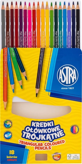 Des crayons triangulaires ASTRA de qualité en set de 18 couleurs qui raviront enfants et adultes. Ils offrent des couleurs intenses et pures, sont souples pour le dessin, ne font pas de poussière et ne bavent pas. La forme ergonomique triangulaire favorise une prise en main correcte pour droitiers et gauchers, et l’emballage comprend un taille-crayon pratique.