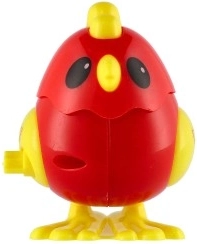 Le poussin est disponible en rouge et en jaune – des couleurs attrayantes que les enfants adorent.