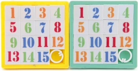 Classique puzzle coulissant 4×4 avec les chiffres 1–15 pour entraîner la logique et la patience. Jeu de poche compact développant la pensée logique, la motricité fine et la résolution de problèmes. Il suffit de mélanger les pièces et, par des mouvements coulissants, de les ranger dans l’ordre numérique correct.