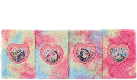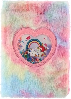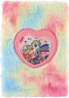 Adorable carnet avec une couverture douce en peluche aux couleurs pastel et une fenêtre en forme de cœur à paillettes avec une licorne. Idéal pour les notes, le journal intime et le dessin, il ravira tous les amoureux des licornes. Format pratique 16 × 21 × 2 cm, agréable au toucher et parfait comme cadeau.