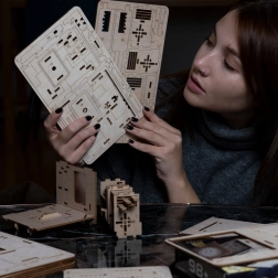 Assemblez puis résolvez ce modèle interactif en bois de bouleau, qui allie créativité et défi intellectuel.