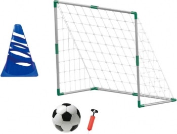 - Cage avec filet, ballon de football, pompe, cône d’entraînement