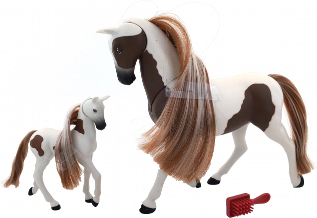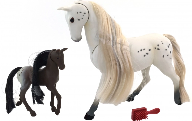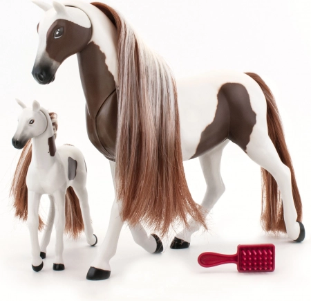 Les dimensions des chevaux sont idéales pour les jeux et divertissements des enfants - la jument mesure 18 cm et le poulain 11 cm, ce qui est parfaitement adapté à toute collection de jeux.