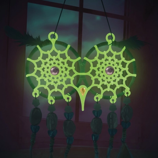 Découvrez un univers magique de création et un coucher tout en douceur. Le kit Nebulous Stars contient tout le nécessaire pour fabriquer deux attrape-rêves chouettes dont les yeux et les fils brillent dans le noir. Cette décoration sera du plus bel effet près du lit ou dans la chambre d’enfant, apportant une subtile touche lumineuse enchantée.