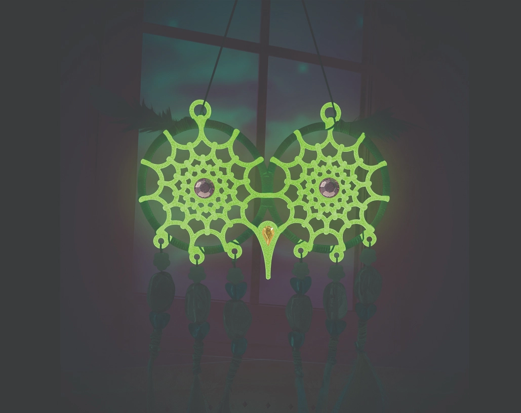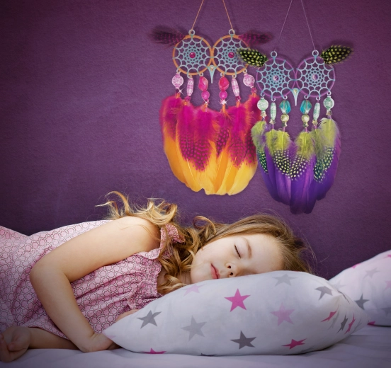 Les matériaux spéciaux des attrape-rêves émettent une douce lueur après exposition à la lumière, créant la nuit un effet lumineux apaisant et une décoration originale pour la chambre.