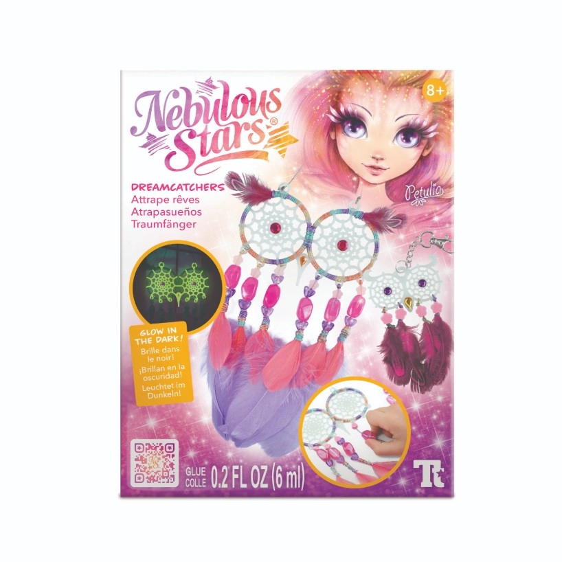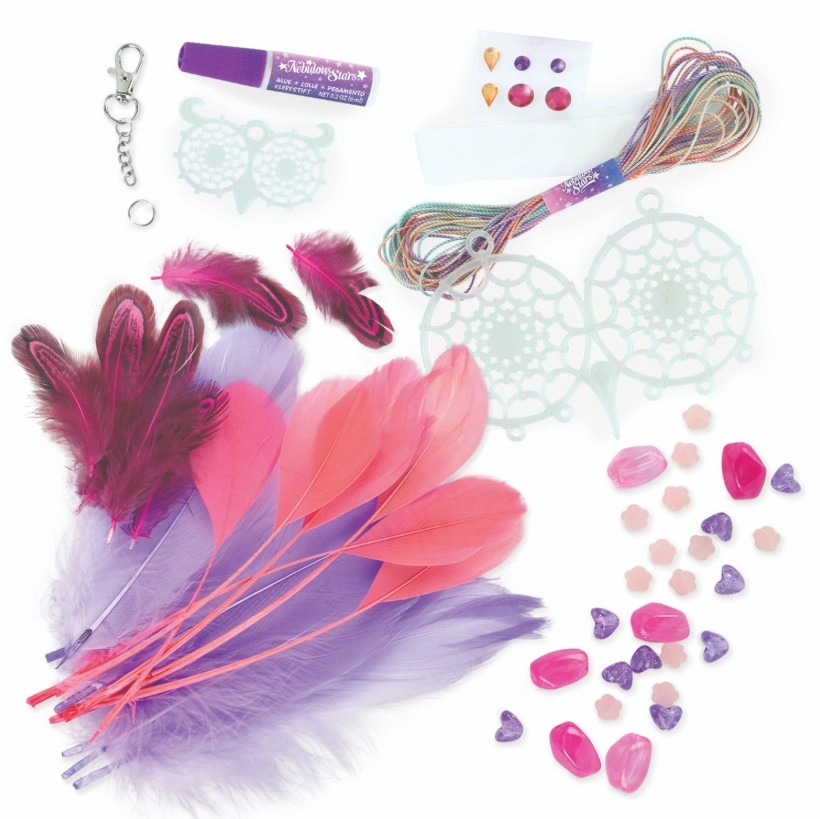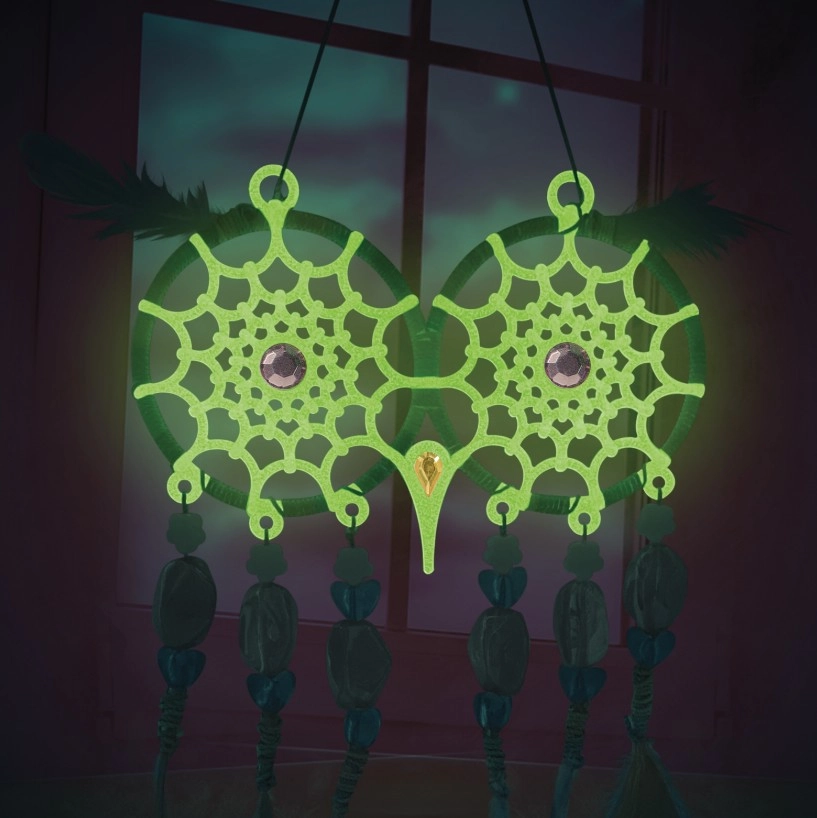 Créez vos propres attrape-rêves magiques avec la marque Nebulous Stars ! Ce kit créatif permet aux enfants de réaliser 2 attrape-rêves en forme de chouette avec un effet lumineux dans le noir, décorés de plumes, de perles et de stickers strass. Une activité idéale pour développer la motricité fine, la créativité et se détendre avant le coucher.