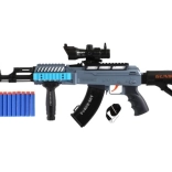 Le fusil présente un aspect réaliste inspiré des armes modernes, une prise en main ergonomique et un chargeur amovible. La combinaison de plastique résistant et de faible poids est parfaite pour les plus jeunes.