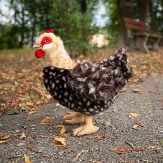 Un dessin fidèle du « plumage », une crête rouge et une matière moelleuse font de cette poule un excellent jouet comme une jolie décoration.