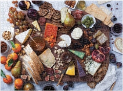 Plongez dans un univers de saveurs et d’esthétique avec un motif réaliste de plateau garni de fromages, d’olives, de figues, de grappes de raisin et de pain frais. Le puzzle est emballé dans une boîte solide et réutilisable en matériaux durables certifiés FSC, et contient également un dépliant avec image de référence et des informations sur les auteurs.