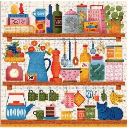 Le puzzle représente une étagère illustrée en détail avec des ustensiles de cuisine, offrant un superbe rendu visuel et une agréable ambiance. Il comprend 15 pièces façonnées amusantes, faciles à assembler. Idéal comme cadeau grâce à son emballage robuste et à son beau design.